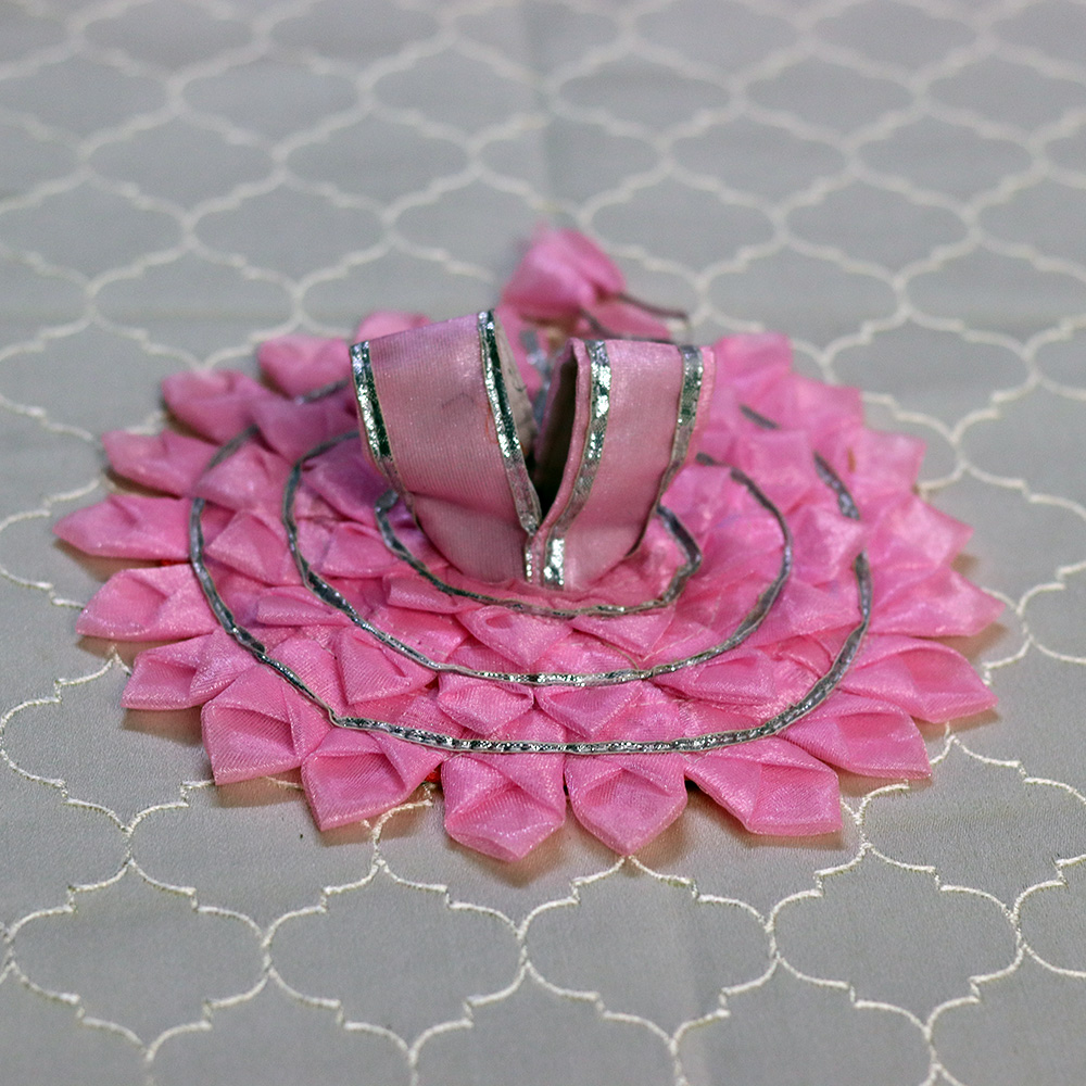 Beautiful Laddo Gopal Ji Pink Lotus Design Poshak Silver Lace work. Enhance the look of your Laddo Gopal Ji during daily worship, festivals like Janmashtami, or special poojas.